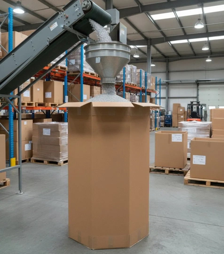 The term "octabin" refers to a high-quality cardboard box made from high-grammage corrugated board, ensuring exceptional durability and stability. This solution is particularly valued in industries that require efficient storage and safe transportation of bulk materials, such as grains, powders, or granules. In addition to its primary function, the octabin is also an excellent bulk packaging solution, facilitating organization and storage.